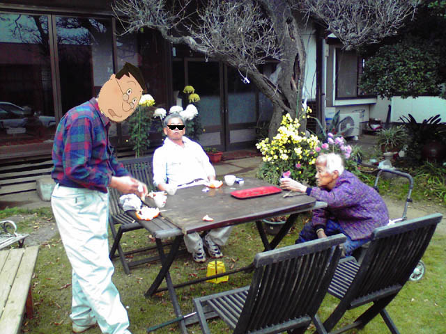 掘らせていただいた所の地主のテルばあちゃんに、僕の掘った一番デケェのを天使の分け前で上納し、お茶とミカンでいっぷく。