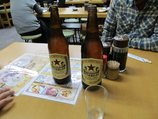 店内に入ると再奥のテーブルに案内され、メニューを見たら赤星が目に入ったので、迷わず注文。