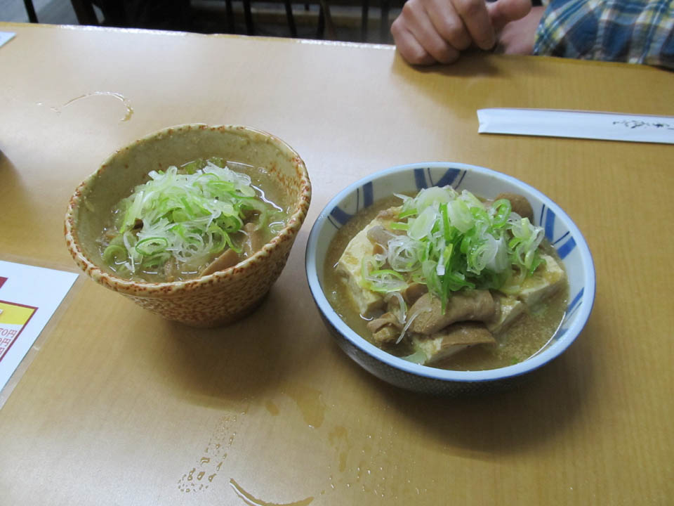 最初のおかずは牛の煮込みと牛煮込み豆腐。