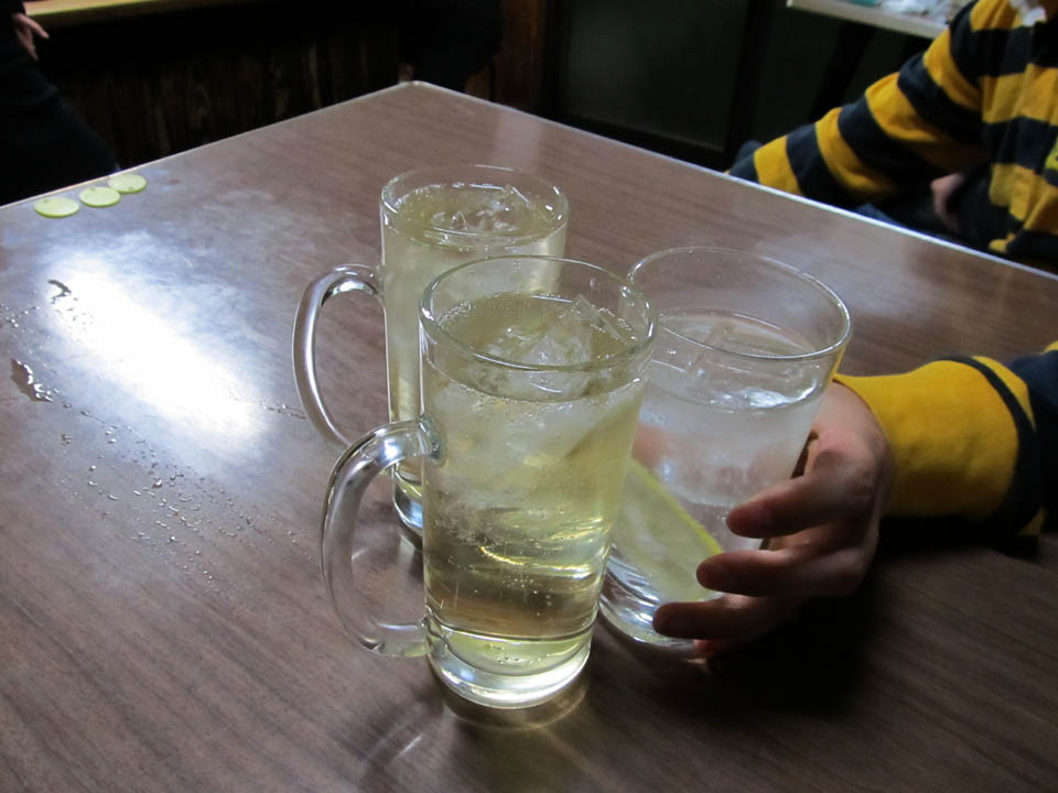 独特の形をしたジョッキで呑むはりやの酎ハイ、うまいです。