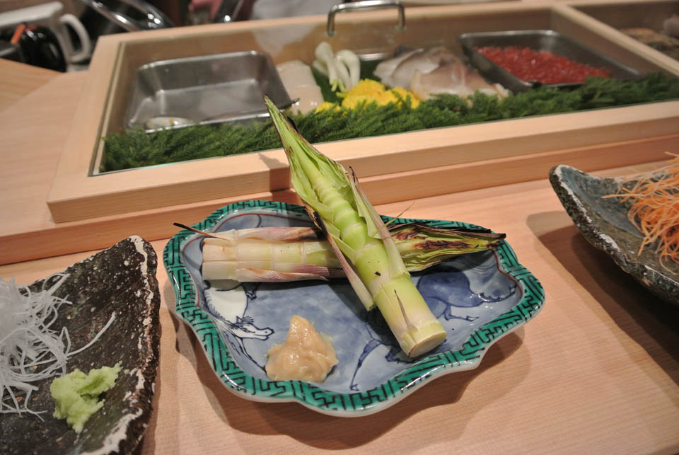 去年もお邪魔したすし屋のさい藤に到着し、去年とっても美味しかったネマガリタケがあるか聞いてみると、ありましたよ~極太なヤツが♪