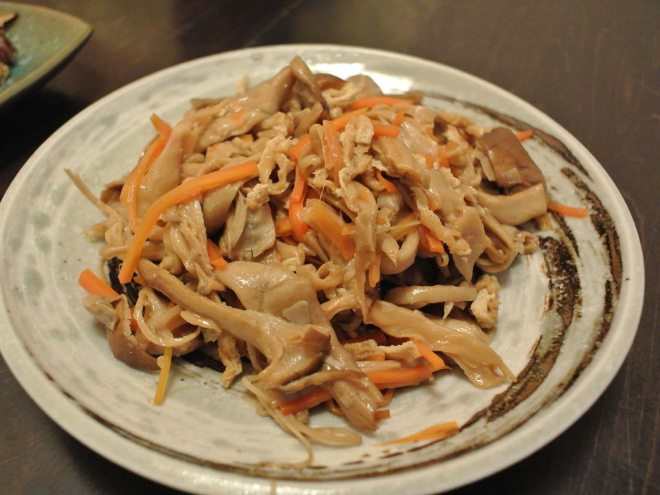 じゃきじゃきの歯応えと、野生きのこの濃いー風味がウマイです。