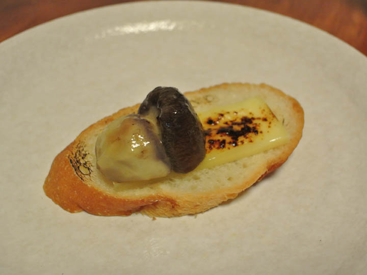 バゲットにニンニクを摺り付けて、チーズを乗っけたらボォォォっと炙り溶かして、クリフウセンのソテーをトッピング。
