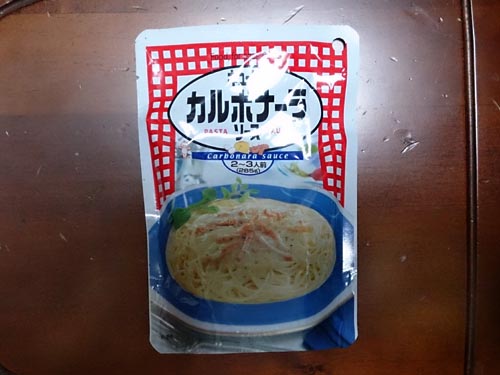 確か昔買ったカルボナーラソースのレトルトパックがあったっけ♪