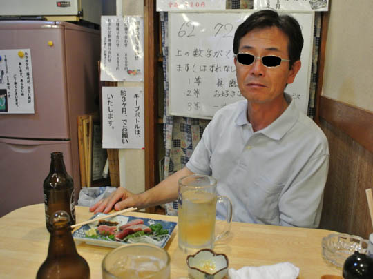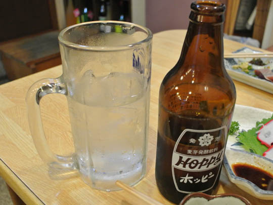 暖簾をくぐると既に到着していたたっつぁんが、奥の小上がりで鰹とホッピーで飲ってます。
