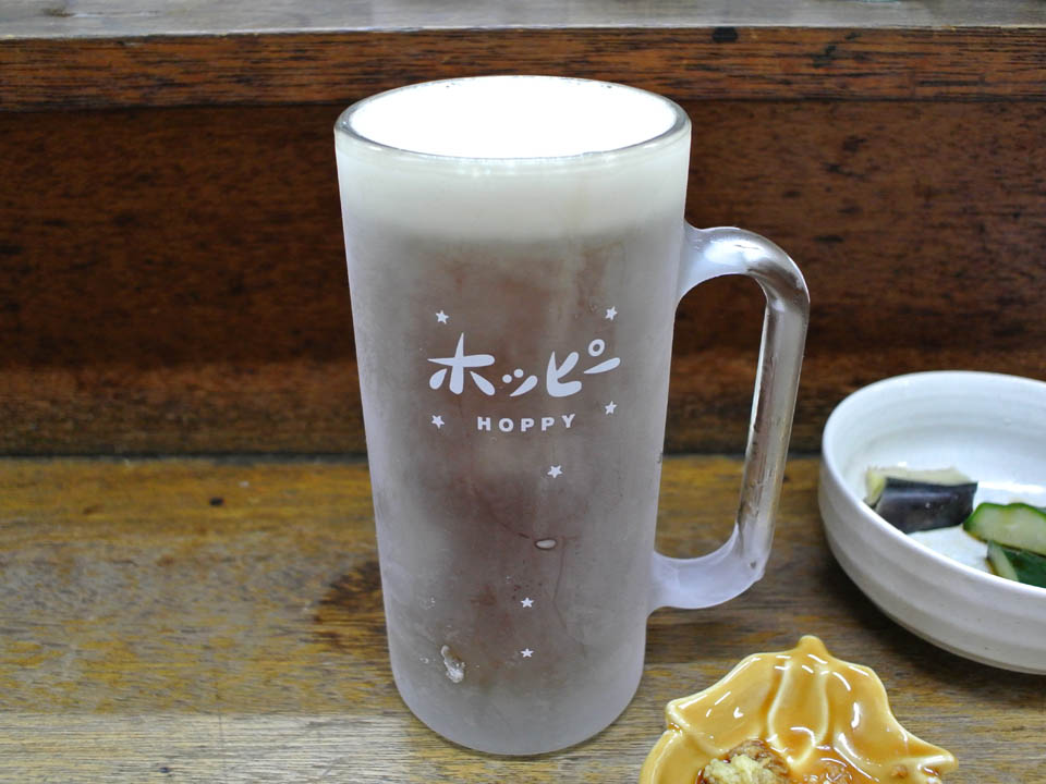 生ホッピーおかわりで僕はワンパターンのミックス、M山氏は黒ホッピーにチェンジ。