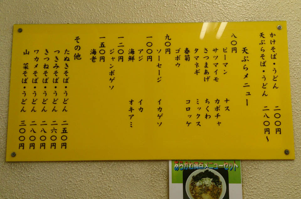 200円のかけそばにお好みの天ぷらをトッピングするシステムっすね。