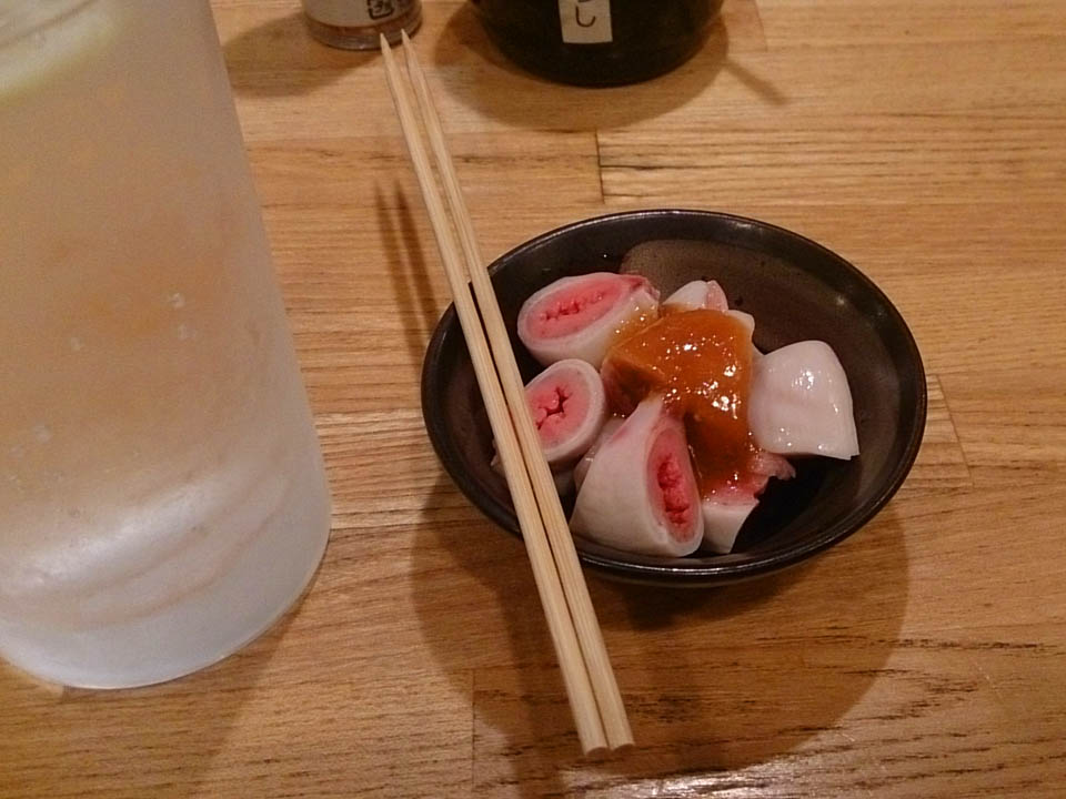 コブクロのいいヤツが入るとね、こうしてお通しで出してくれたりするんだな。