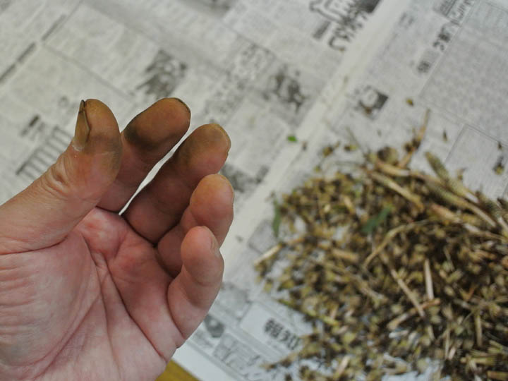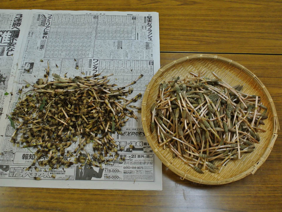 両手の指先は土筆のアクでまっ黒け。