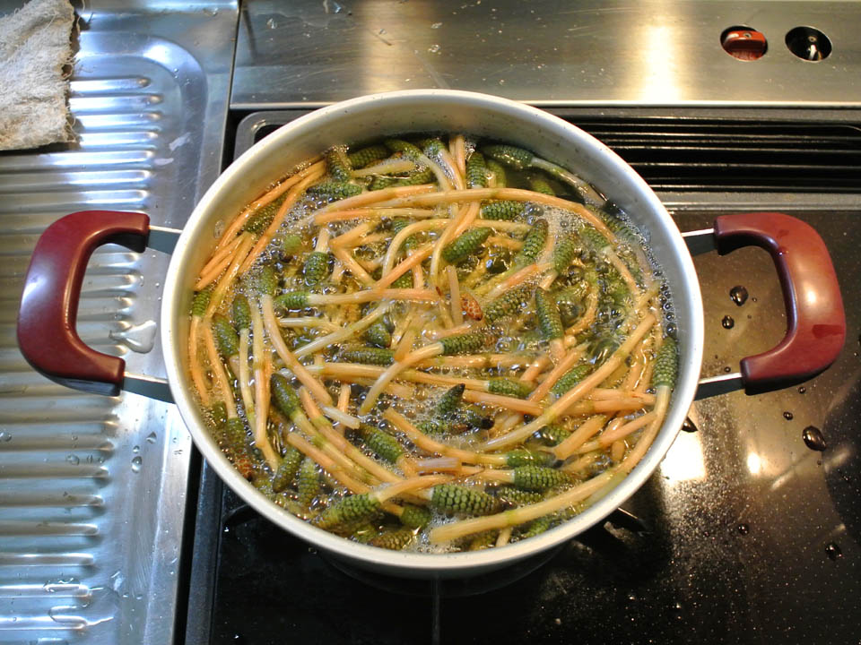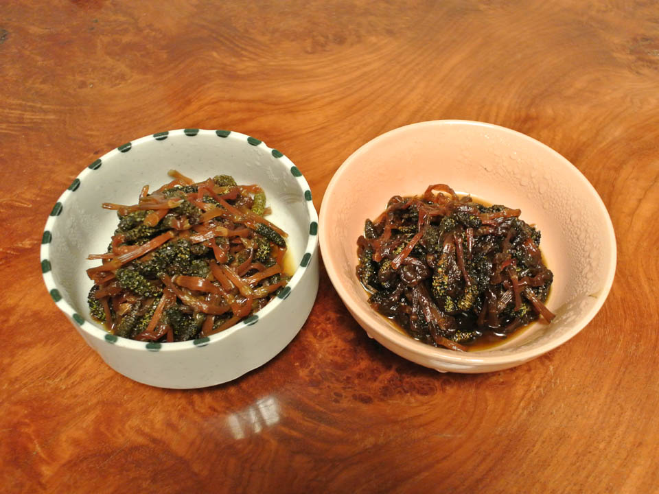 右の方は茹でこぼし2度でアクを抜き、少々濃い目に味付けたヤツ。