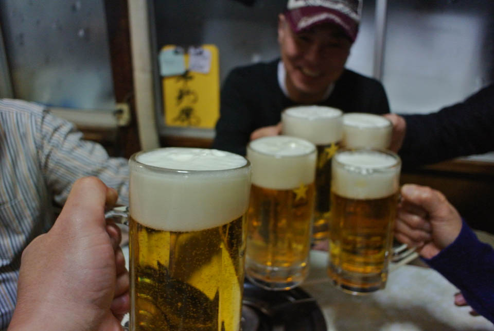 Y田氏とK沢夫妻は初訪で、T中氏やら僕から、豊田屋のアンコウ鍋がいかにウマいかって話を普段から聞かされてるのでね、もう完全お預け状態でハァハァしてるご様子っす(ワハハー)