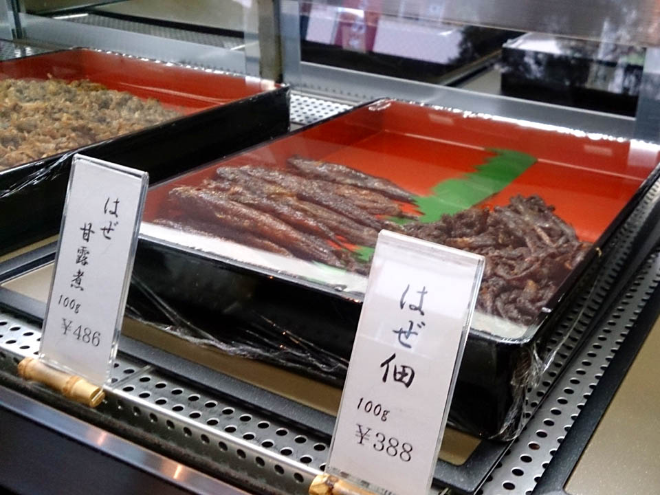 あさり焼きと蛤焼、そして自家製いなご佃煮とシジミ佃煮。
