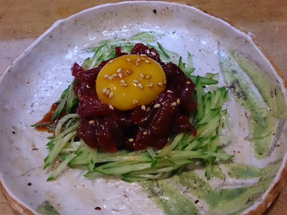 せっかくなのでユッケと穴子白焼きでハイボールやら二つ流し込み、さっくりごちそうさま。
