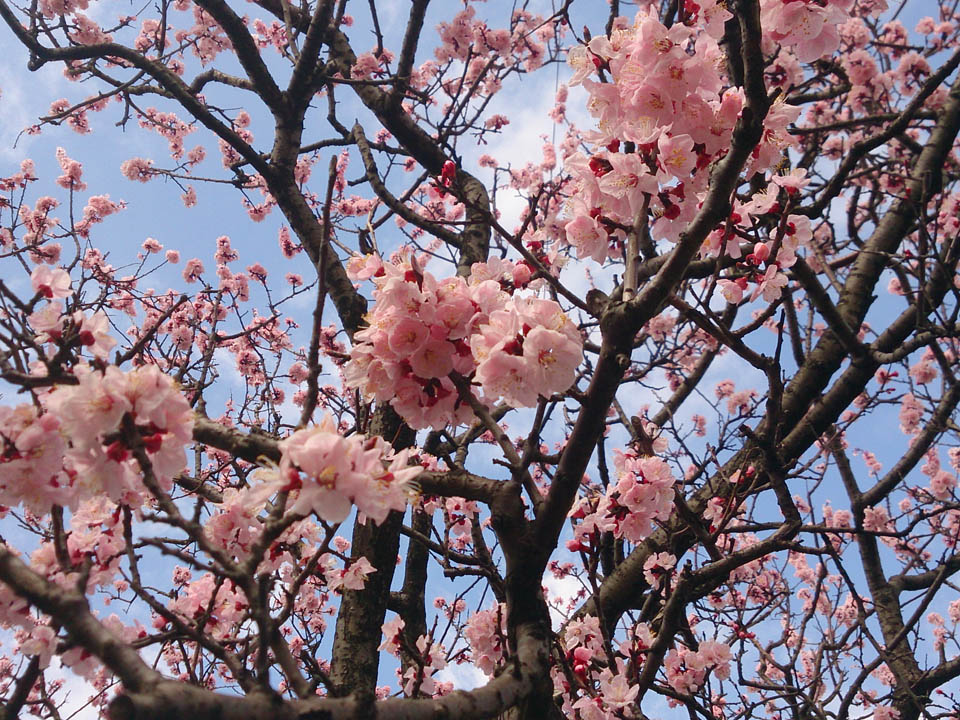お散歩コースに植わさってる杏子が満開を迎えていた。