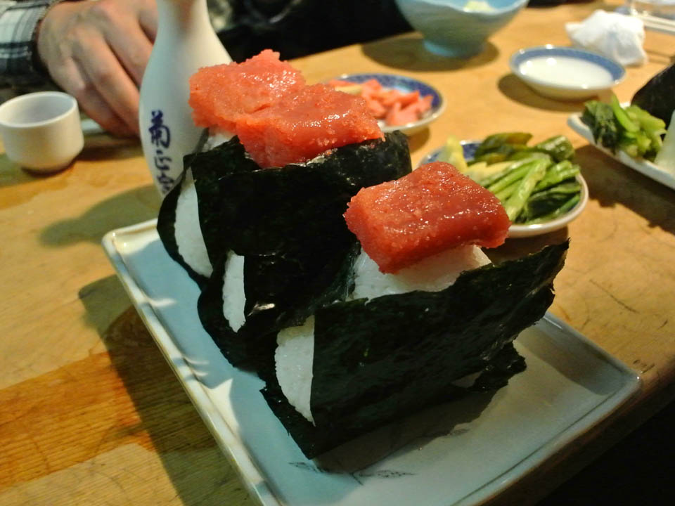 さっき花見で腹いっぱい食ってるんだけどね、岸田屋のマブイ若女将が握ってくれるコイツは別腹なのサ♪