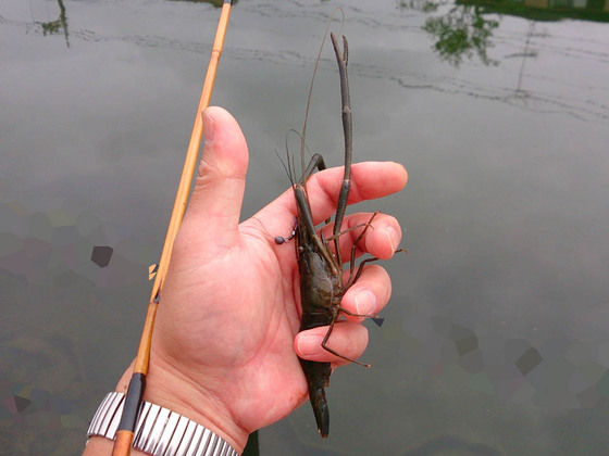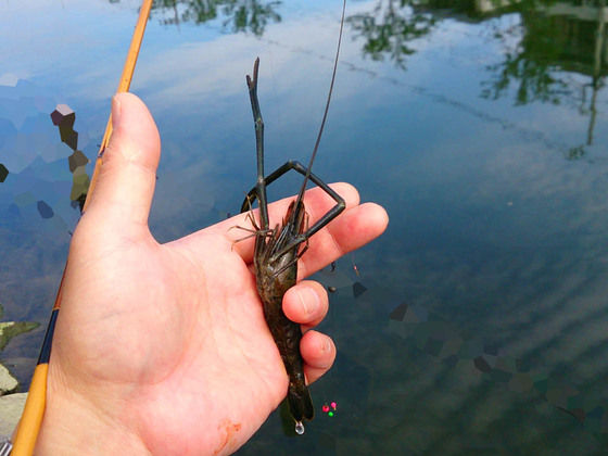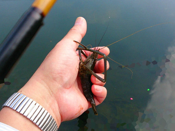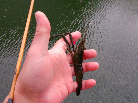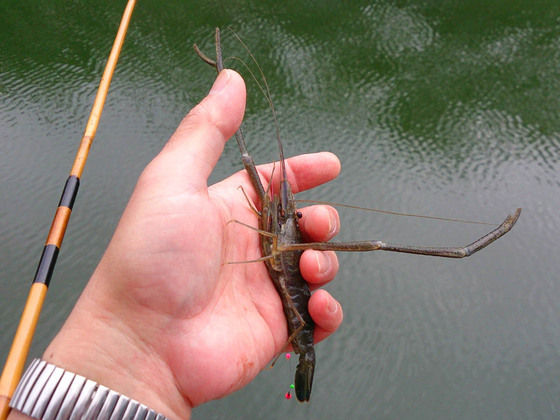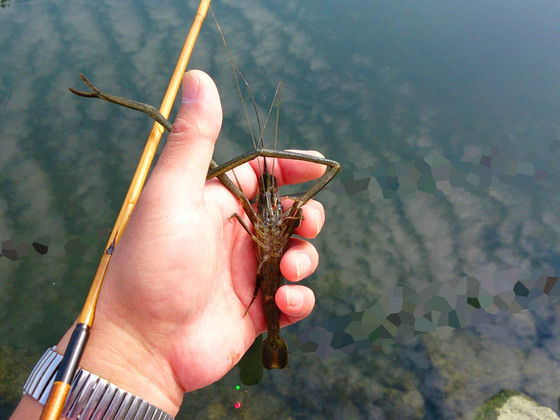 そこへ持ち寄る為の食材確保で手長蝦釣り。