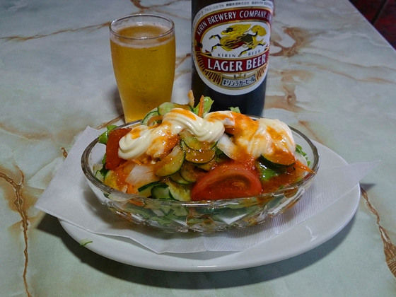 毎度のルーティンでルービー&サラダ。