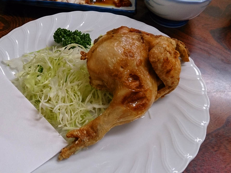 鳥房の名物半身揚げ、小さい方が骨まで食えてウマいんだ。