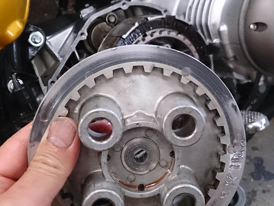 仮にクラッチアウター・センターの寸法がおなじだと仮定すると、クラッチ板がワンセット増えてるって事はクラッチプレートの厚みがCBに比して薄くなってるのかな・・・・