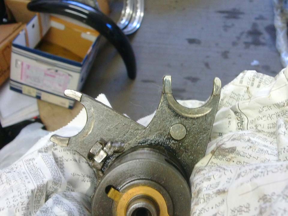 現代のエンジンではフォークの爪部分にはステライトが盛られてるのが当たり前なんだが、OHVカブのコイツはナマクラなので、思いっきり擦り減ってた。
