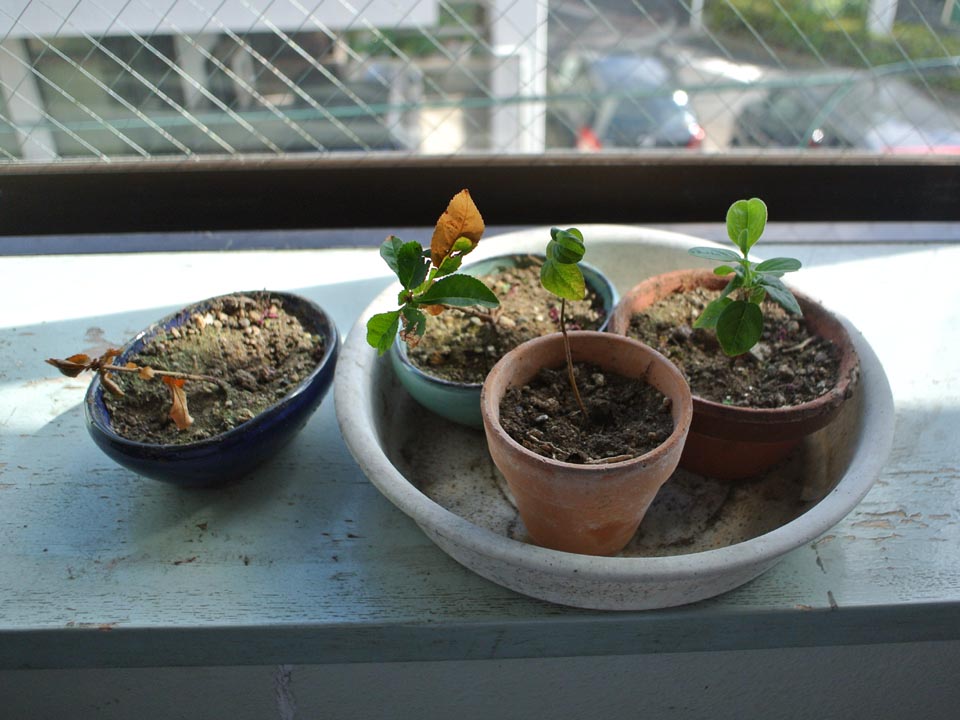 去年採取したボケとマルメロの種を植えて置いたら、嬉しい事に発芽した。