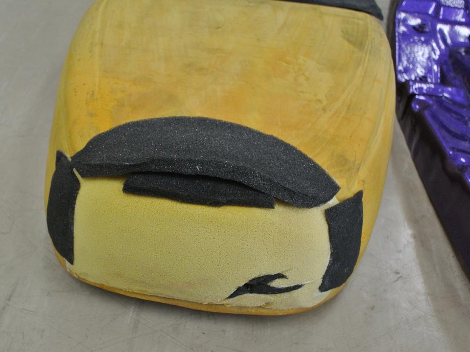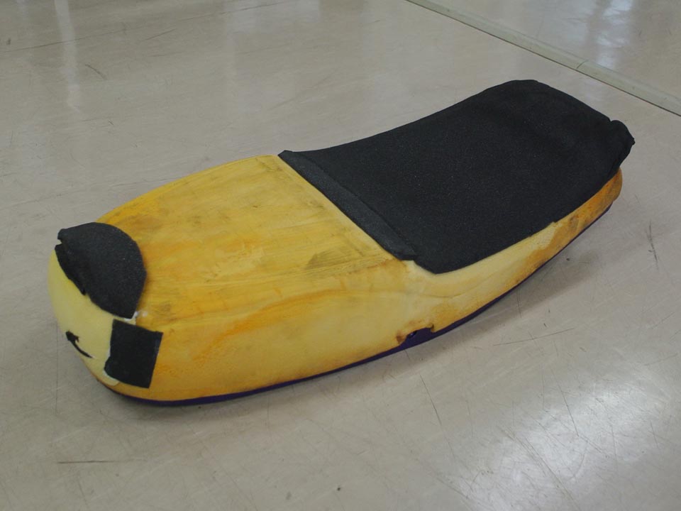 しかしあれだ、ノーマルスポンジに合わせて裁断されてる表皮をアンコ抜き形状にフィットさせるのは、やっぱし至難の業だった。