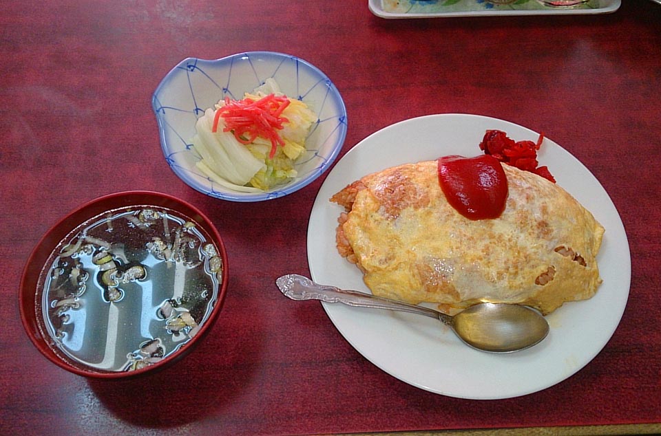 嗜好がお子ちゃまっぽいので、時々無性にオムライスが食いたくなってね、としのやのオムライス@大盛りにお新香つけて。