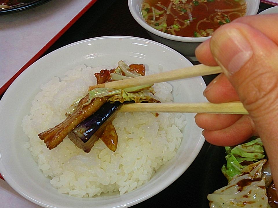 これはまた別日のかみやランチで、豚肉となす炒めライス。