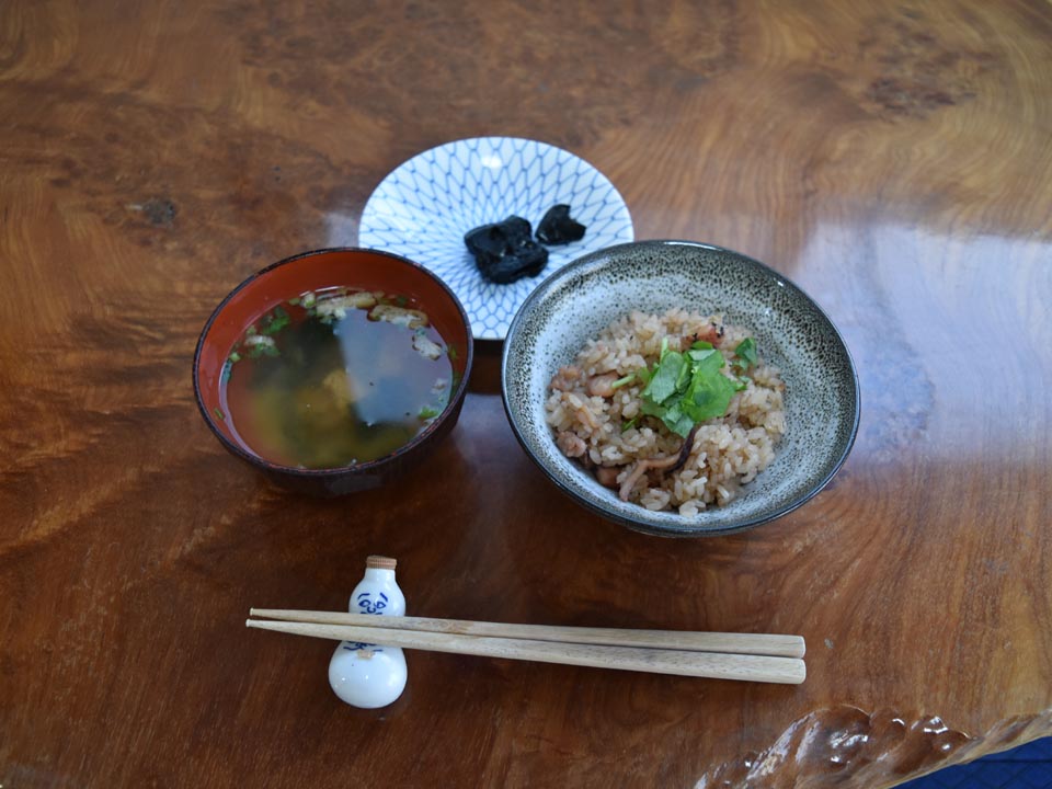最後は呑み朋磯ゴキブリ氏が釣って来た江戸前真蛸でこさえた蛸飯。