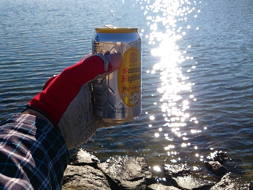 先客が一名、例の妙痴気林な釣り方で頑張ってる。