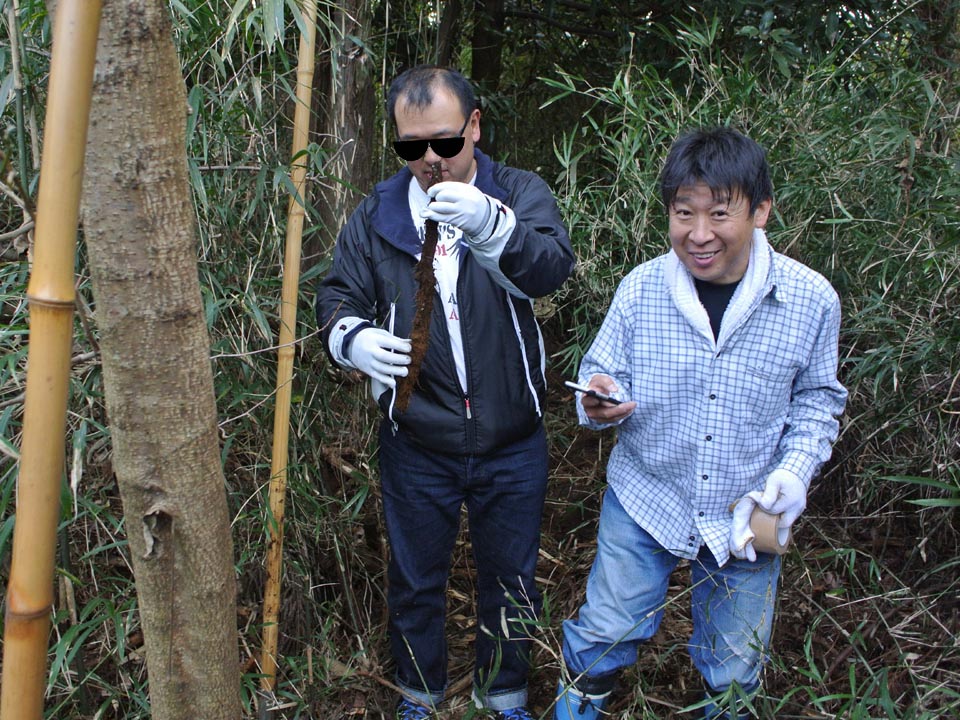 更にジャングルに分け入り良さげな弦を見っけ、こんだはM山氏に掘ってもらいます。