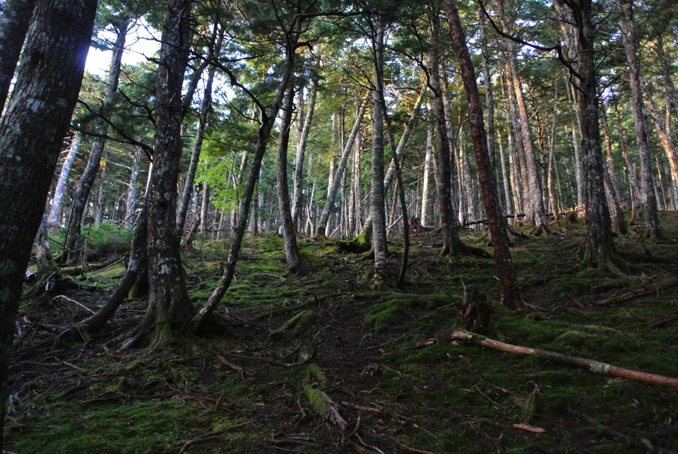植生はコメツガ・シラビソ・ナナカマド・シャクナゲで、林床には苔が多くなり、いい感じ。