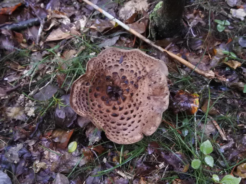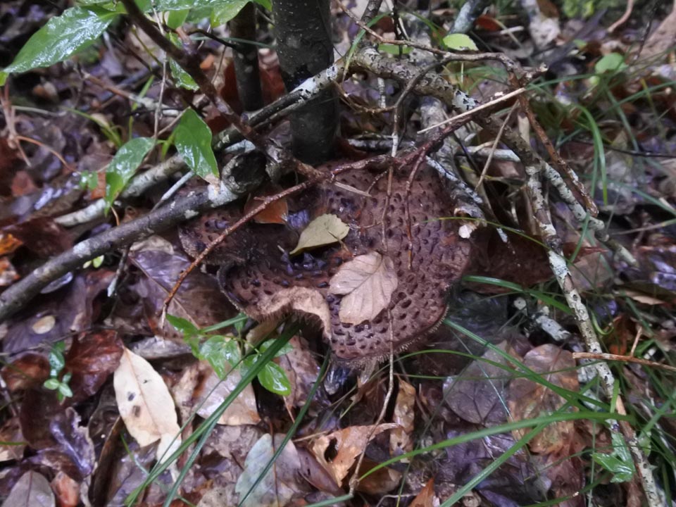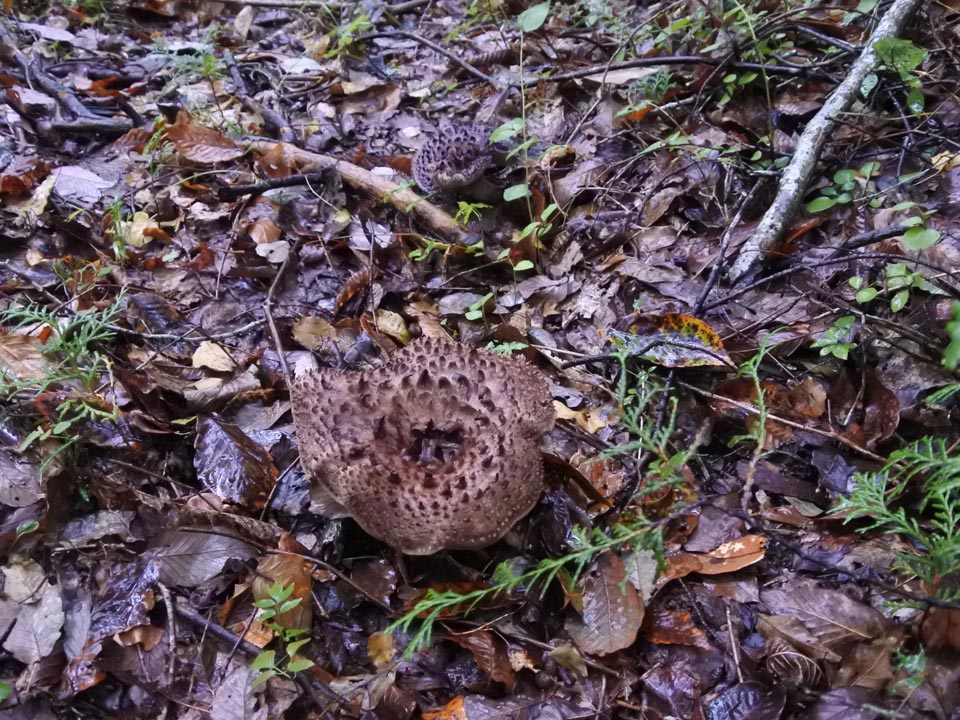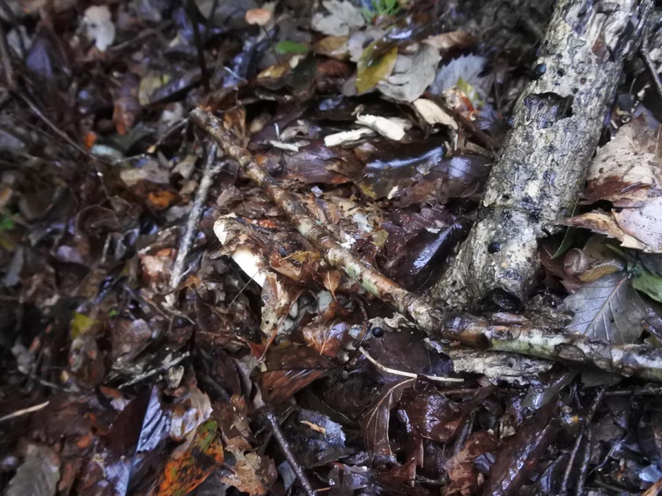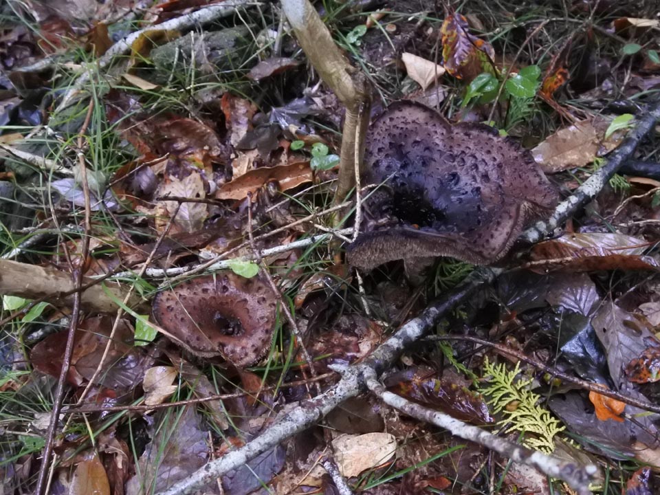 見慣れた針葉樹のマッチャンと違い、広葉樹のリターに紛れたバカマツタケは見つけにくい。