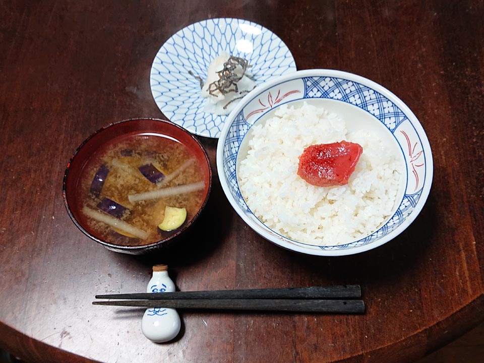 新米三食目は明太子。