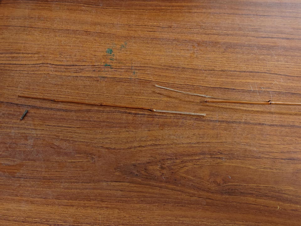 単純にポッキリ折れた場合、添え木でも充てなければ修復は無理だったろうが、今回幸いな事に裂ける様に折れたので、曲げ強度はある程度確保できそう。