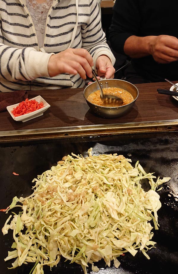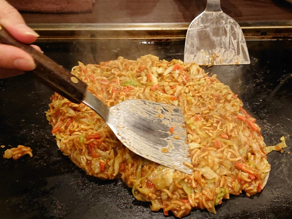 次が磯ゴキブリママのオーダーで、明太もちチーズもんじゃ+ベビースター。