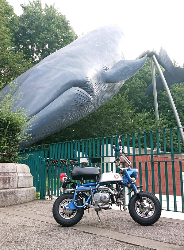 帰りはいつもの様に谷中を抜けて上野公園裏、デケェ鯨の所でパチリ。