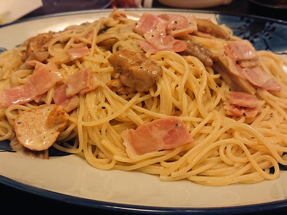 カノシタ・ショウゲンジ・アイシメジ・カヤタケのパスタまいう~♪
