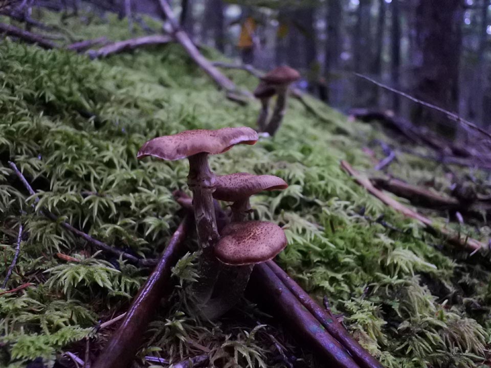 いつもの突入点から下がって行くと、雑きのこの発生が多少増えた様だが、下がるにつれてそれも少なくなるという、このところのパターン。