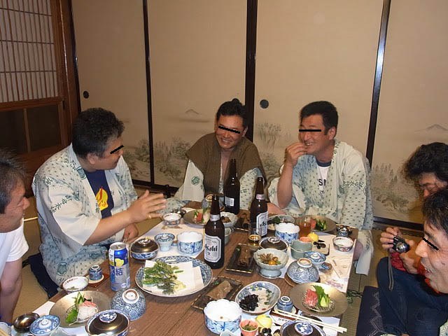 宿に到着したら凝った身体を温泉でほぐし、宴会突入です。