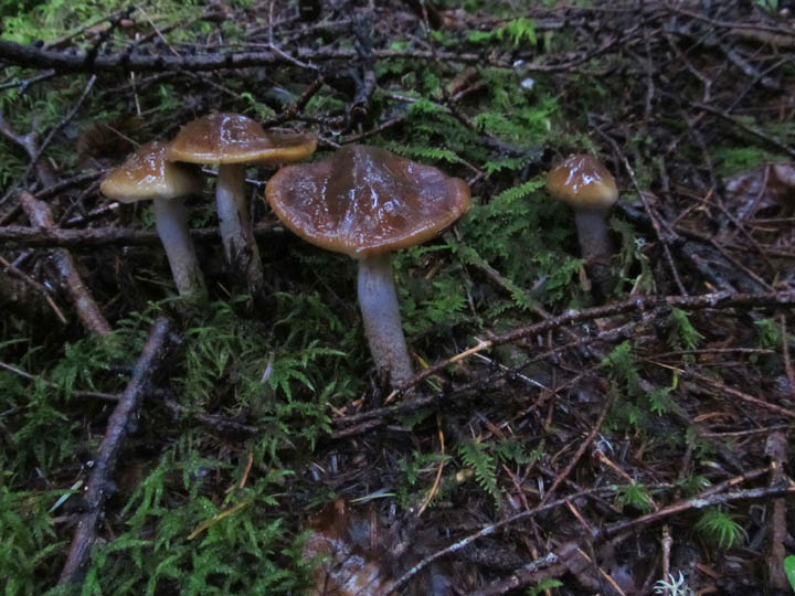 こちらホームグラウンドのアブラシメジモドキはあっちに比べると華奢。