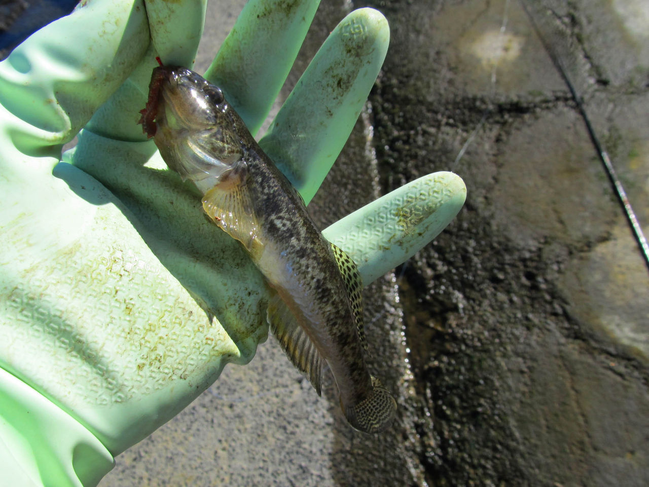 最初の三匹はヘチの穴で掛けた。