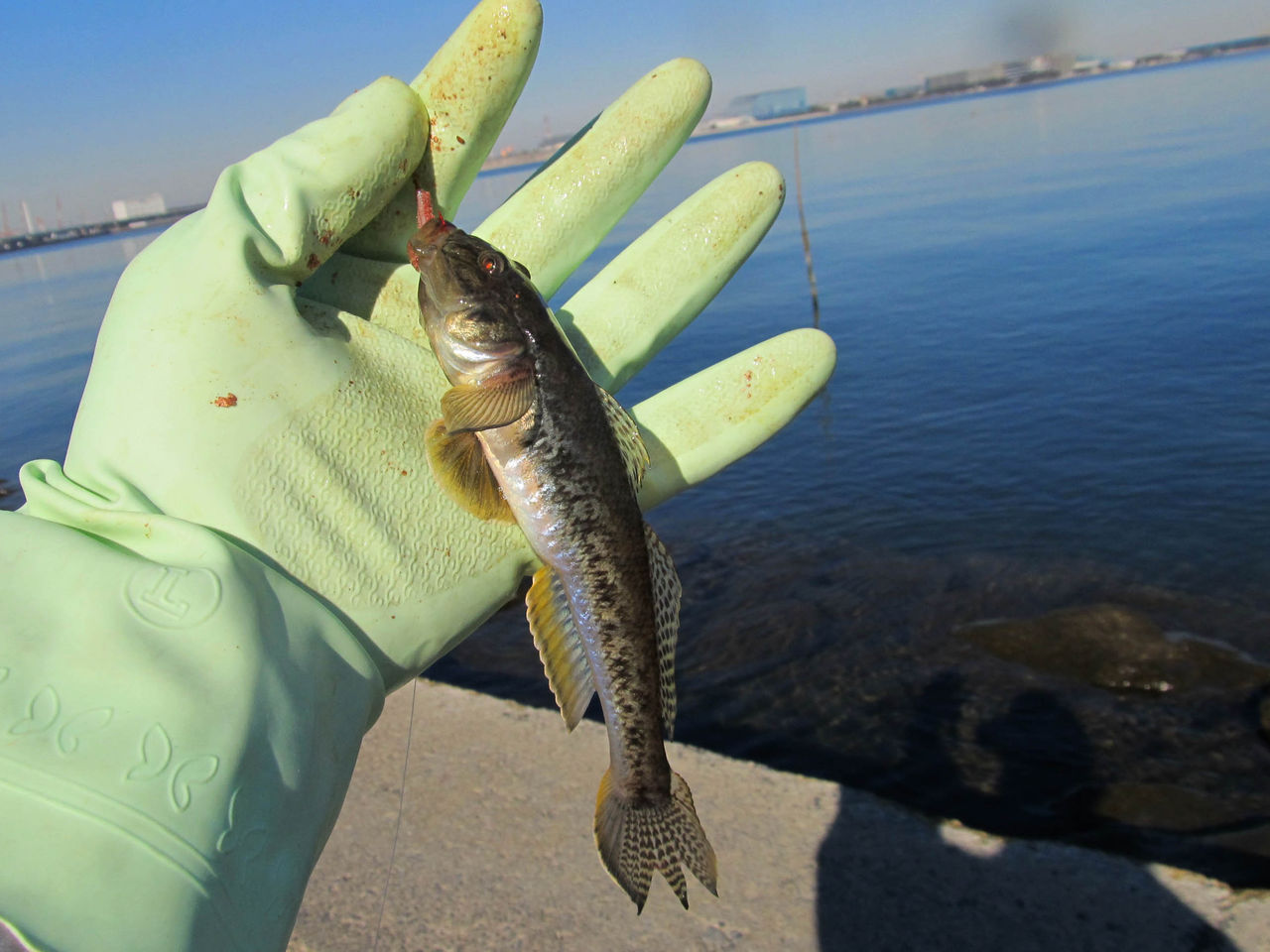 満潮時のセオリーでヘチ狙い中のまこちゃん。