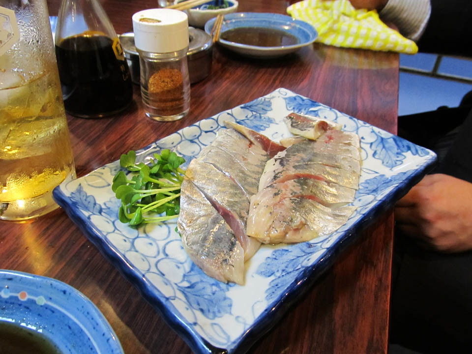 大きめな真鯵を酢で〆たやつ、手作り感が滲み出てますねー。