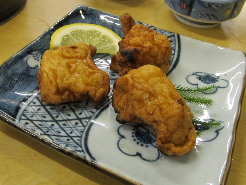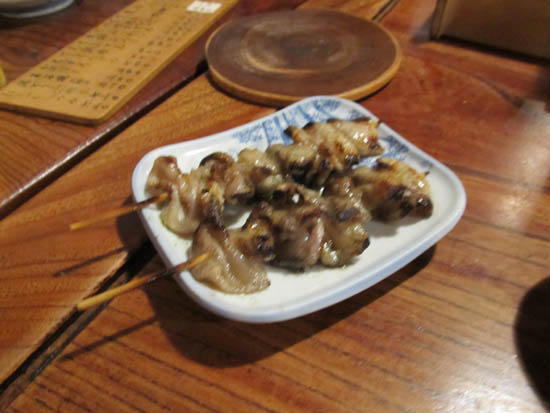 宿題であった鰻くりから焼きが、今日は品切れで、代わりに鶏皮焼き。