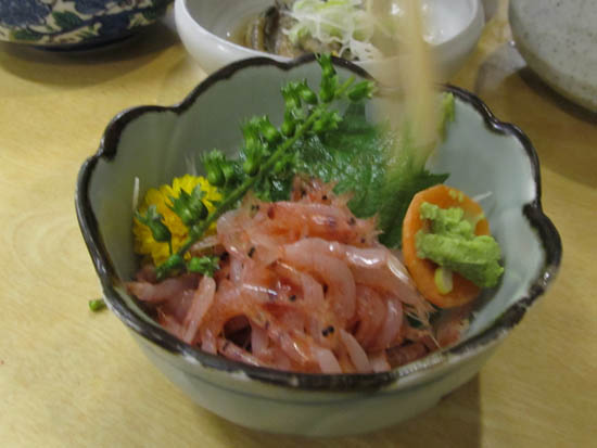 季節ものさっぱり系で桜えび・きびなご南蛮酢・生姜ね。