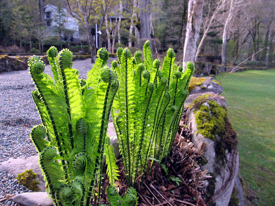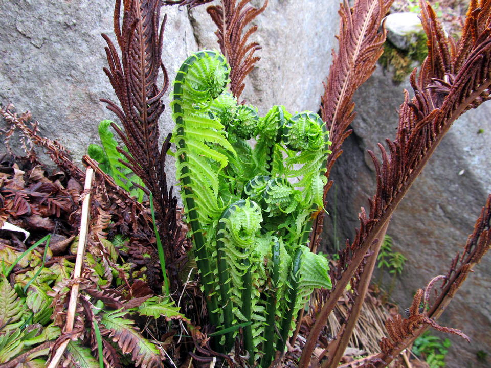 早朝の丸沼環湖荘前にて素晴らしいコゴミをパチリ。