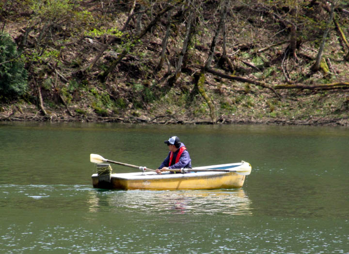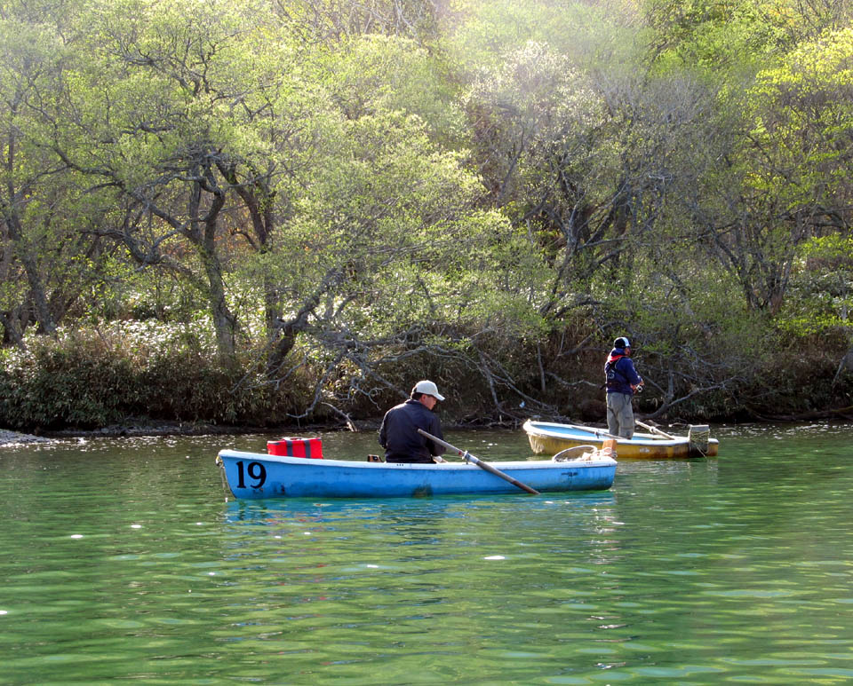 いざ大尻沼へボートを漕ぎ出し、フライを始めるけど、アタリ無し・・・・