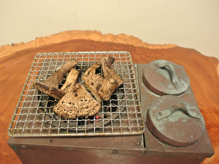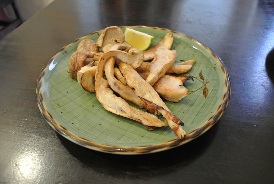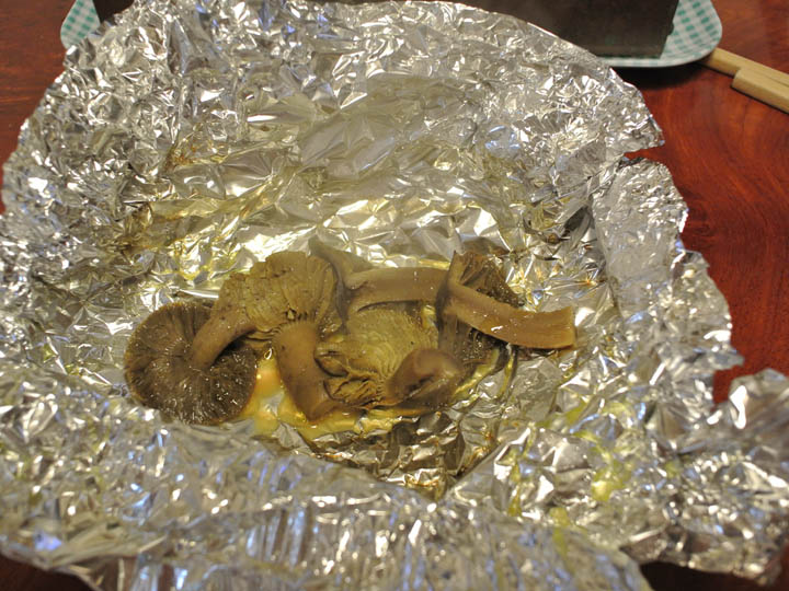 炙りコウタケに醤油を垂らして口へ運べば、もうこれは幸せ以外の何物でも無い♪