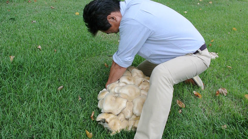 職場の近所に凄いきのこがどっさり生えてるってゆーもんで、とりあえず同定出来るかもだから写真送ってって頼んだら・・・・